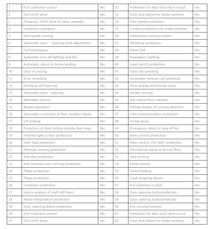 FUJI Passenger Elevator applies the advanced Panasonic VVVF variable voltage and variable frequency control technology to the elevator door operator system so as to ensure the smooth elevator door and quiet switch. What is more, the self-learning door load detector increases the sensitivity of the elevator door switching on/off. It monitors the variation of elevator door load on every floor. Automatically rectifying the most appropriate open / shut speed in every floor so as to guarantee the security and reliability.