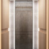 Car ceiling:Mirror stainless steel, on both sides of the LED light, middle white acrylic pervious to light.